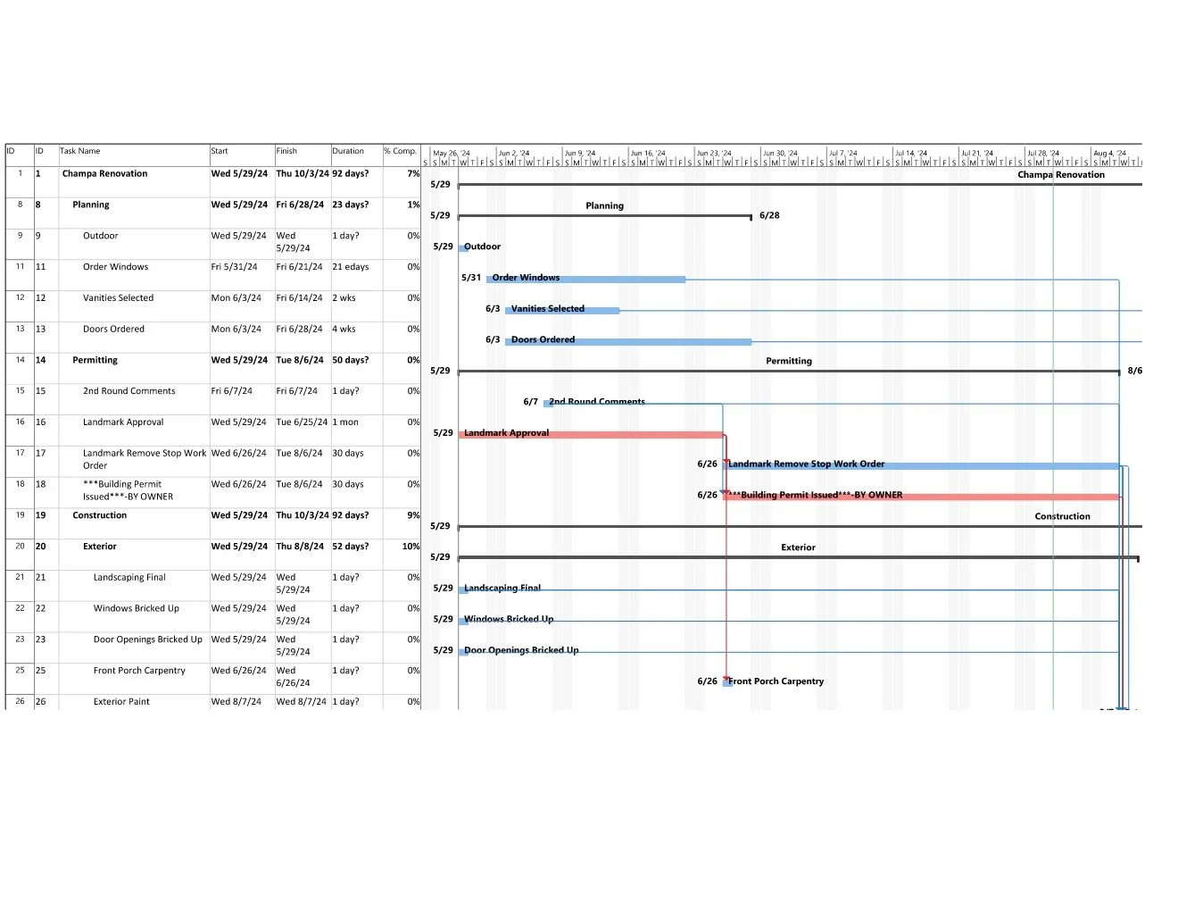 Create a clear, trade-coordinated timeline to complete the work